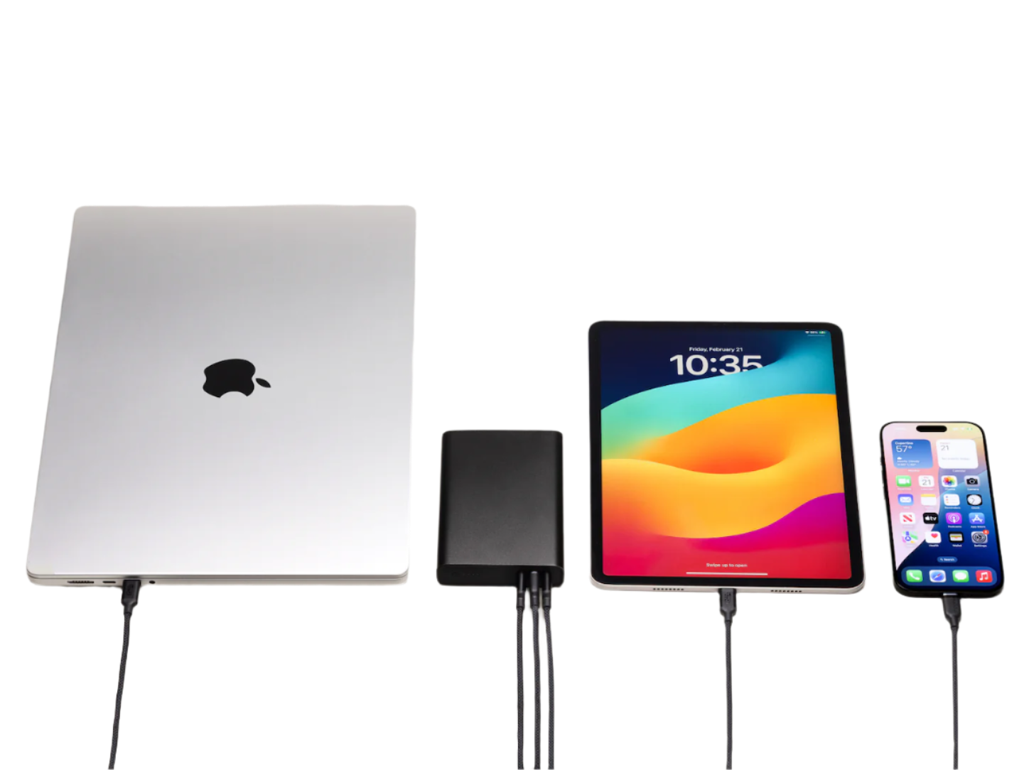 Powerstation Ultra’s three USB-C PD ports (140W, 100W, 100W) let you charge multiple devices at once, like your laptop, phone, and headphones.